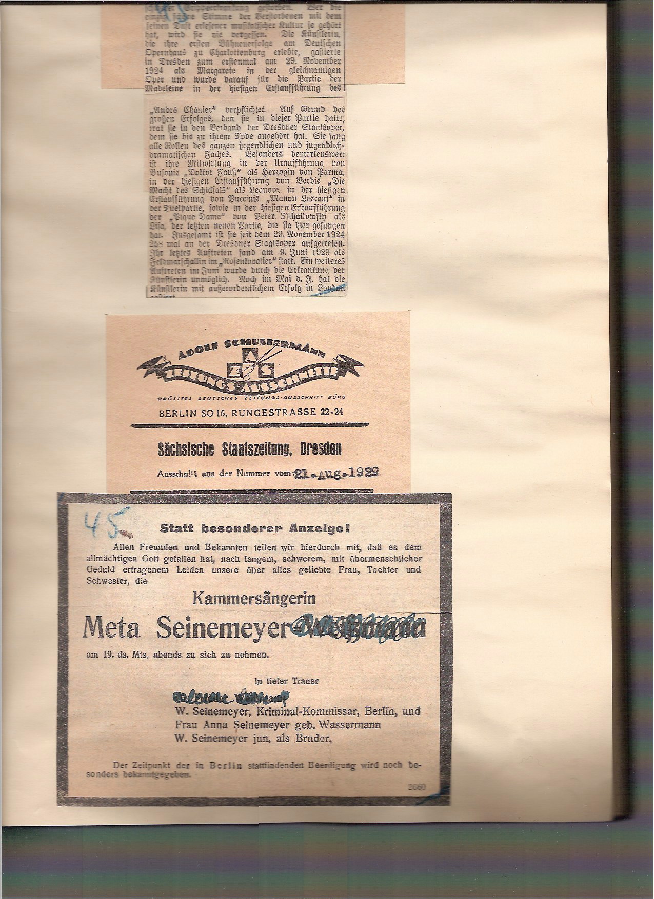 Here are some obituaries of Seinemeyer (in German, of course) that were collected by her family. No violation of copyright is intended.