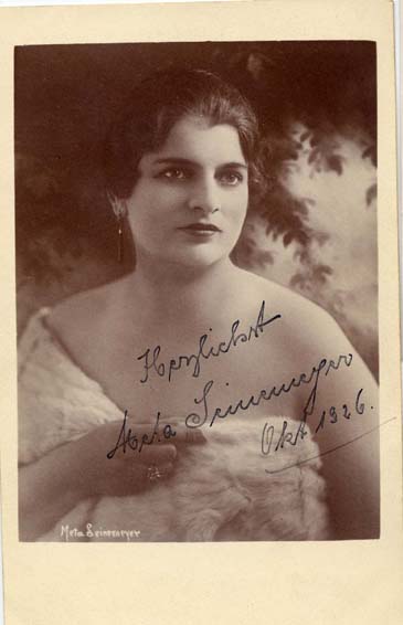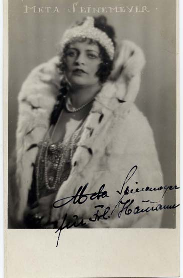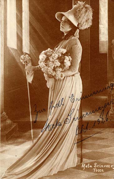 Another photo of Seinemeyer as Tosca. The "Frl. Hamann" for whom she signed the photo was her future sister-in-law, Hertha Hamann.