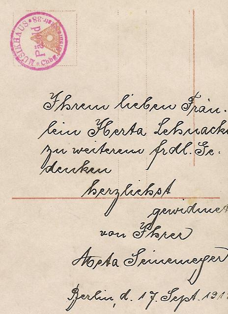 Seinemeyer in 1918. On the reverse of this photo is the following dedication: